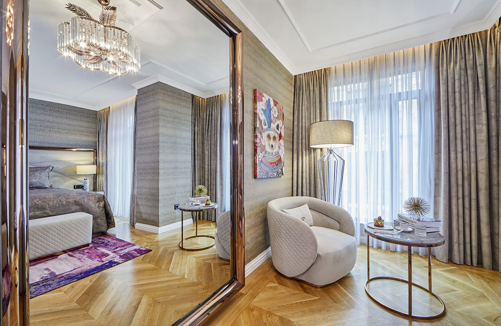 Şehrin kalbinde estetik Deluxe Odalarımızın keyfini çıkarın. Modern tasarımla özenle döşenmiş 35 m2 alana sahip odalarımız, otelin çok özel ruhunu yansıtan dekorasyonuyla konforlu bir konaklama için ideal bir seçimdir.