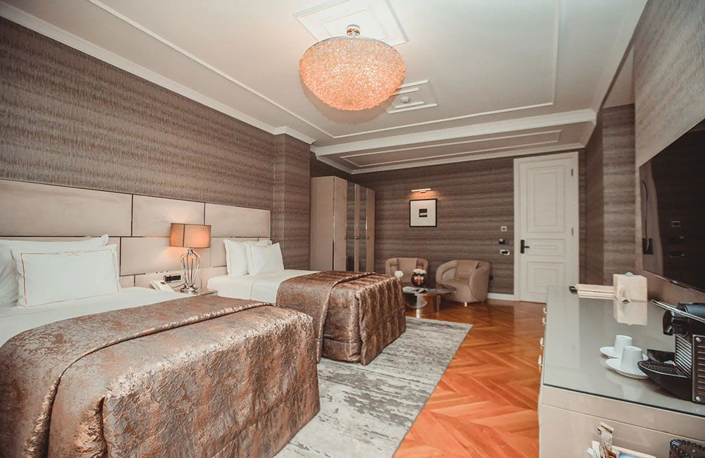57 m2 – 36 m2 Our Twin Deluxe Rooms offer the comfort and more you may need for your dream stay. Bright and elegant interior of our single rooms which are flooded with natural light, ideal for relaxation and an energetic start to the new day.